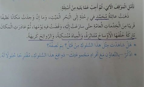 الشاهد هنا أن طلبة الصفوف الأساسية الذين يتناقلون تلك الرواية والنشاط ولا بد سيتاثرون بها وسيربطون بين اسم محمد وتلك الأفعال غير المقبولة ، وعليهم الاجابة على اسئلة النشاط بمخاطبة محمد وتوجيه اللوم له او الاساءة اليه لما اقدم عليه من سلوك !