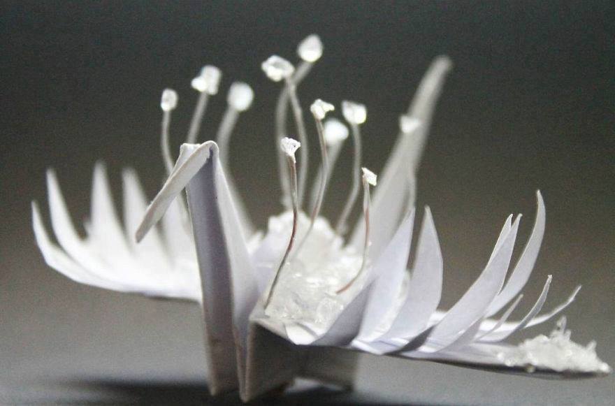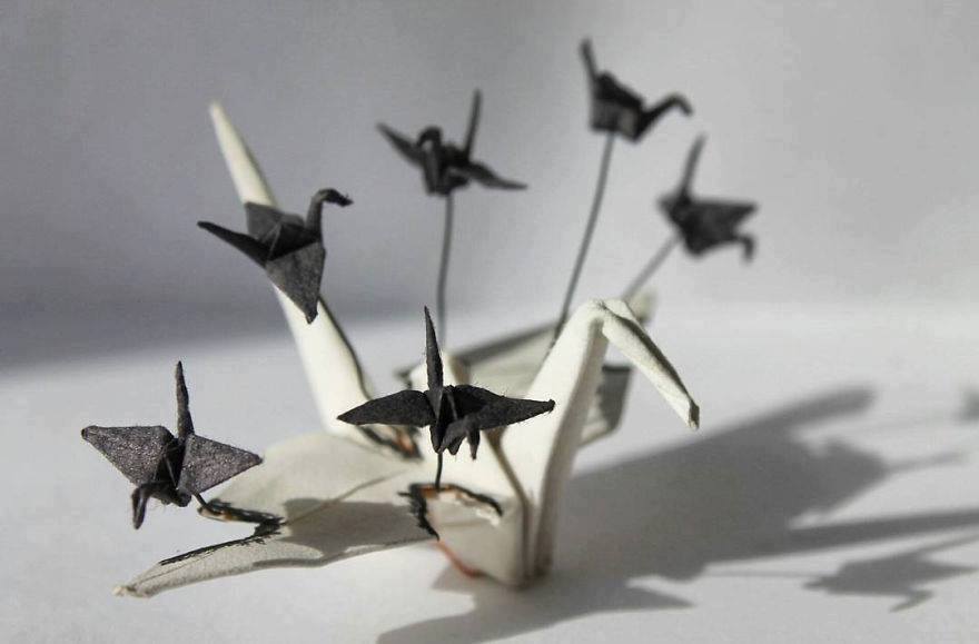 الاوريغامي هو فن ياباني يعني طي الورق ، و الهدف منه هو تحويل ورقة مسطحة ومربعة إلى الشكل النهائي من خلال تقنيات النحت و الطي.