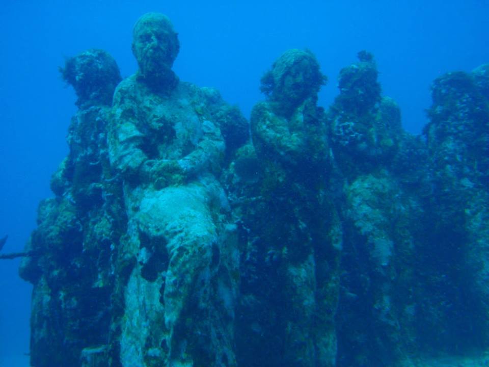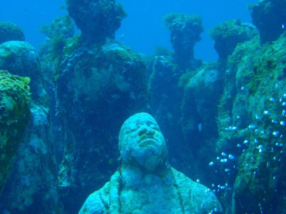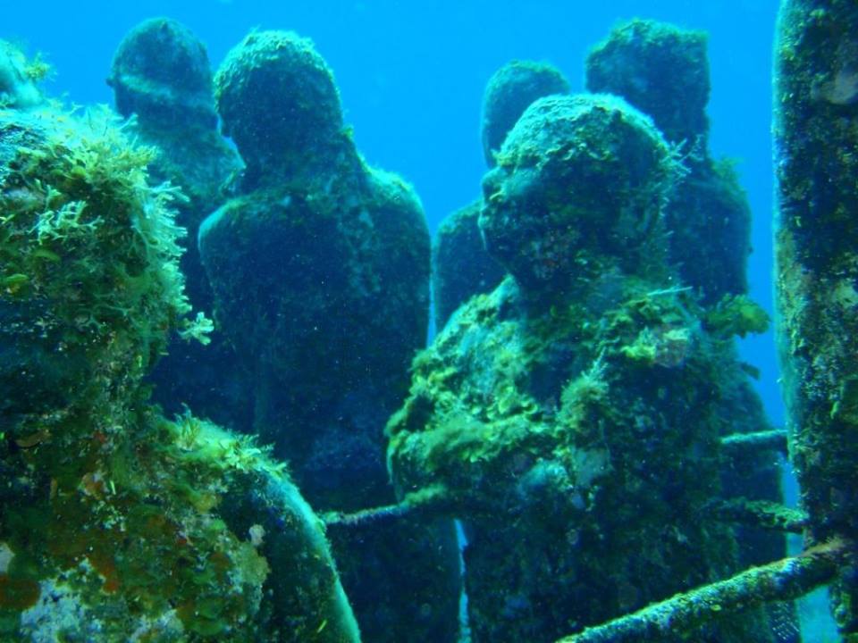 الحديقة الوطنية البحرية للمنحوتات "كانكون" التي تقع في قاع البحر بالمكسيك للنحات البريطاني جيسون دي كايرس تيلور