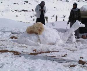 انتظر الأردنيون زائرهم الأبيض، مثل أرضهم التي انتظرت لقاء الثلج بعد طول غياب، فخرجت الأسر تحتفي على طريقتها بتشكيل منحوتات ثلجية احتوت في بعض منها مكنونات من الإرث الثقافي، وهو ما انعكس جليا على صفحات التواصل الاجتماعي بابتهاج غامر.