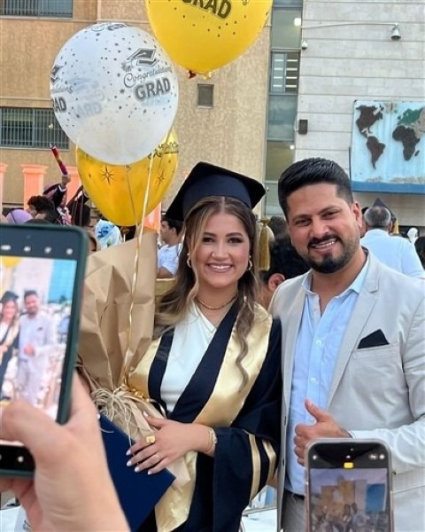 وظهرت لين الصعيدي في الصور مع والدها المنشد عمر الصعيدي ووالدتها وشقيقتها، وارتدت ملابس التخرج.