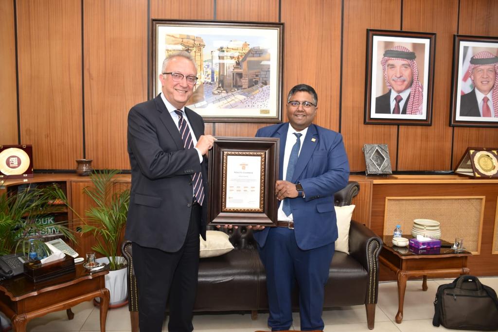 وحضر اللقاء نواب رئيس الجامعة وعميد كلية الحجاوي للهندسة التكنولوجية مدير دائرة العلاقات والمشاريع الخارجية، ومدير مركز الاعتماد وضمان الجودة وعدد من المسؤولين في الجامعة.