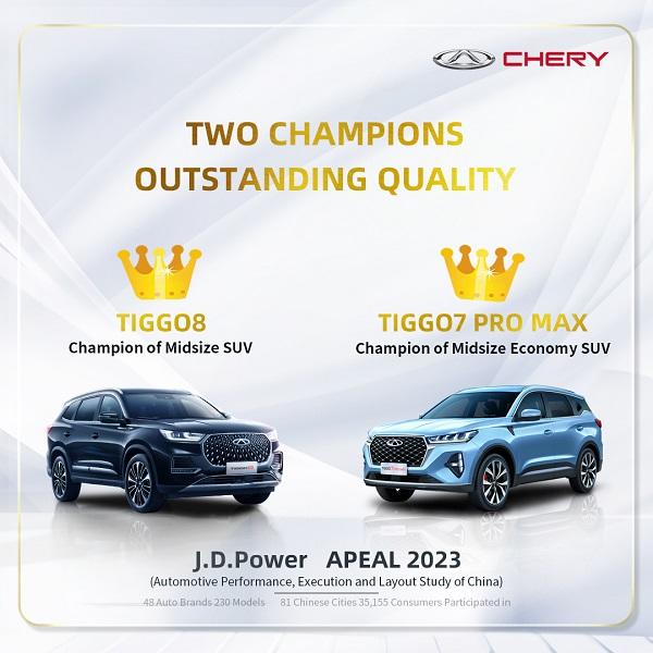 حصدت شركة شيري، الشركة الصينية الرائدة في صناعة السيارات، على المركز الأول كأفضل علامة تجارية للسيارات الجديدة، وفق دراسة الجودة الأولية (IQS)، الصادرة عن شركة جي دي باور لعام 2023. وحصلت شيري تيجو على أعلى تصنيف في فئة سيارات الدفع الرباعي متوسطة الحجم.