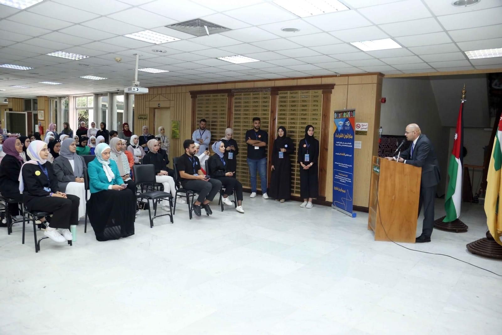 وأشار الذنيبات في كلمة ترحيبية بالطلبة والمشاركين إلى أهمية القراءة في توسيع مدارك الطالب وأثرها الكبير على طريقة تفكيره، إذ تعلّمه التفكير النقدي وتكسبه المهارات الهامة التي تجعل منه إنسانا ناجحا في عمله وحياته، مؤكداً على أن القراءة ضرورة إنسانية لا ترفا، وأن القراءة لو لم تكن حاجة إنسانية لما كاءت كلمة "اقرأ" أول كلمة نزلت في القرآن الكريم.