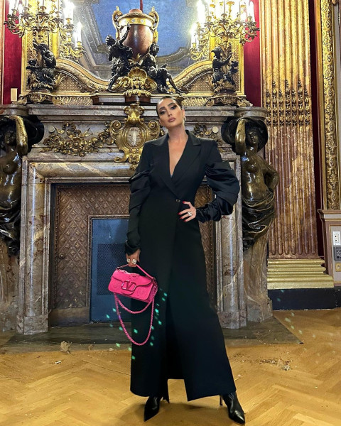 وتألقت غادة عبد الرازق بإطلالة أنثوية غير تقليدية، حيث ظهرت مرتدية فستاناً طويلاً بأكمام طويلة باللون الأسود، وكان التصميم يشبه صيحة البليزر التي تتصدر أحدث صيحات الموضة خلال هذا الموسم.