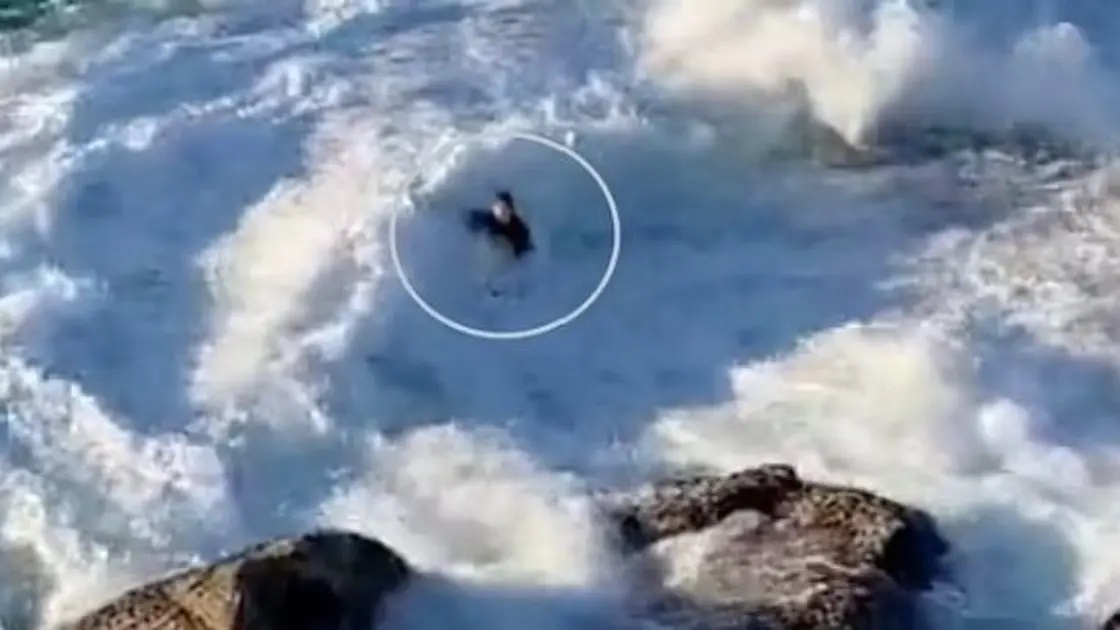 كل ذلك وصديقه يصور "الدراما" على الهاتف المحمول غير قادر على مساعدته وهو يحاول العودة إلى الصخور الآمنة ضد التيارات البحرية القاسية في لاندودنو.