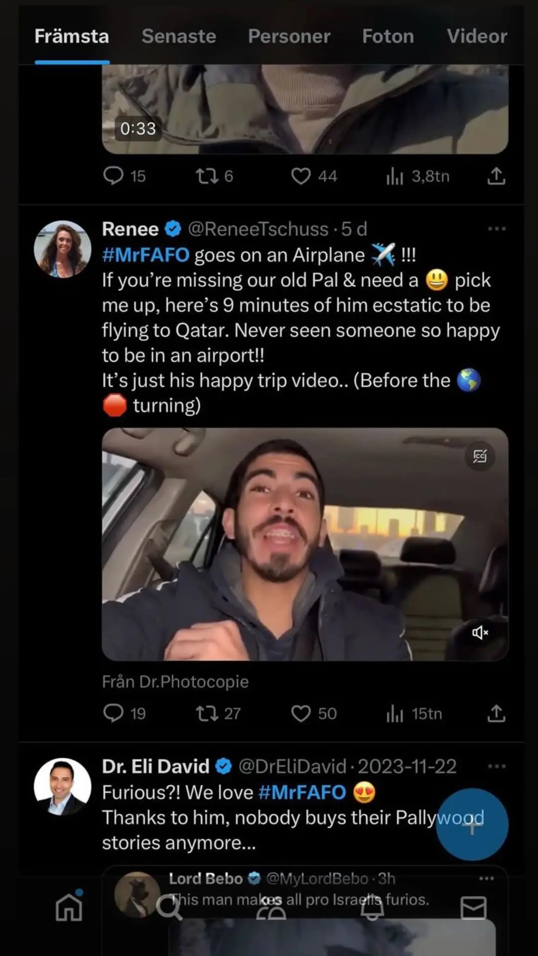 وعبر وسم #MrFAFO بدأت الصفحات العبرية نشر تغريدات وصور تدعي من خلالها بأن الصحفي الجعفراوي قد غادر قطاع غزة تزامنًا مع عودة القصف، وبأنه قرر ترك أهله هناك والهروب إلى قطر.