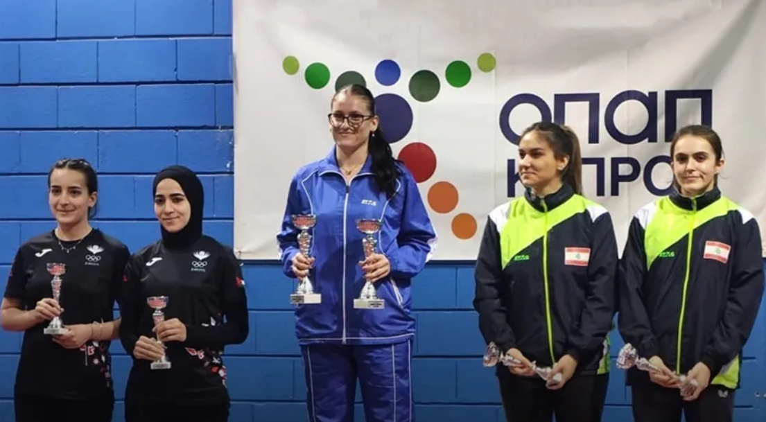 ظفر المنتخب الوطني لكرة الطاولة والمكون من اللاعبتين تيماء أبو يمن وزينة صدقة الميدالية البرونزية لمسابقة زوجي السيدات في بطولة قبرص الدولية.