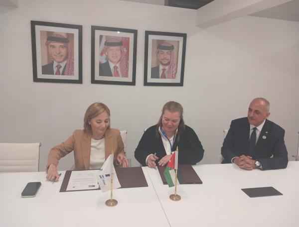 وقعت وزيرة التخطيط والتعاون الدولي زينه طوقان مع بنك الاستثمار الأوروبي على قرض إضافي بقيمة (100) مليون يورو مقدم من البنك لمشروع تحلية ونقل المياه من العقبة إلى عمان- الناقل الوطني، وعلى منحة استثمارية بقيمة (50) مليون يورو مقدمة من الإتحاد الأوروبي من خلال البنك للمشروع، ووقعت على القرض والمنحة نيابة عن بنك الاستثمار الأوروبي نائبة رئيس البنك السيدة جيلسومينا فيجلوتي (Gelsomina Vigliotti)، وذلك على هامش أعمال في مؤتمر الأطراف (COP28) للاتفاقية الإطارية للتغير المناخي المنعقد في دبي. وحضر حفل التوقيع وزير البيئة الدكتور معاوية الردايدة.