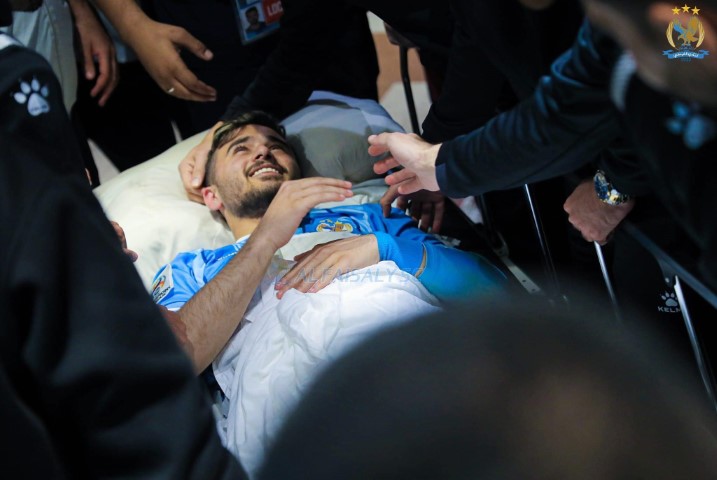 وغادر الشناينة أرضية الملعب بسيارة الإسعاف.