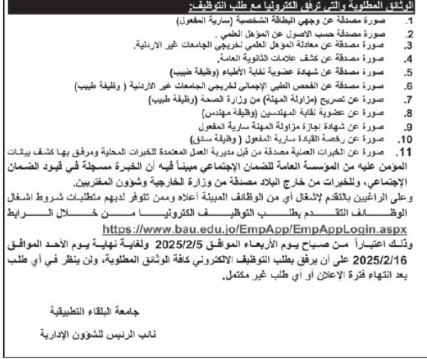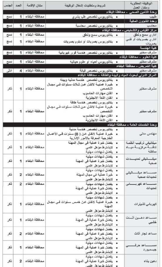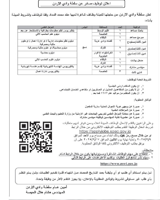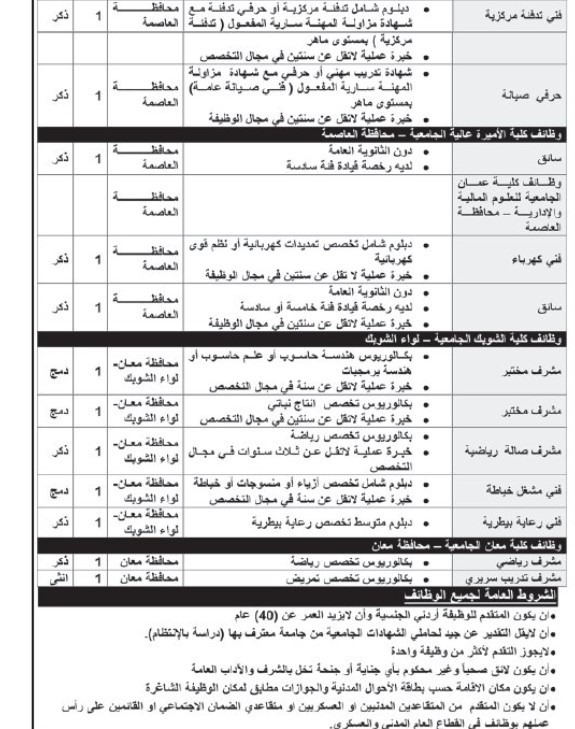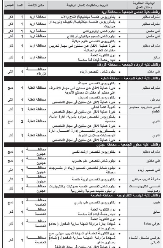 اعلنت دوائر حكومية عن توفر فرص عمل شاغرة للاردنيين من حاملي الشهادت وغيرهم .