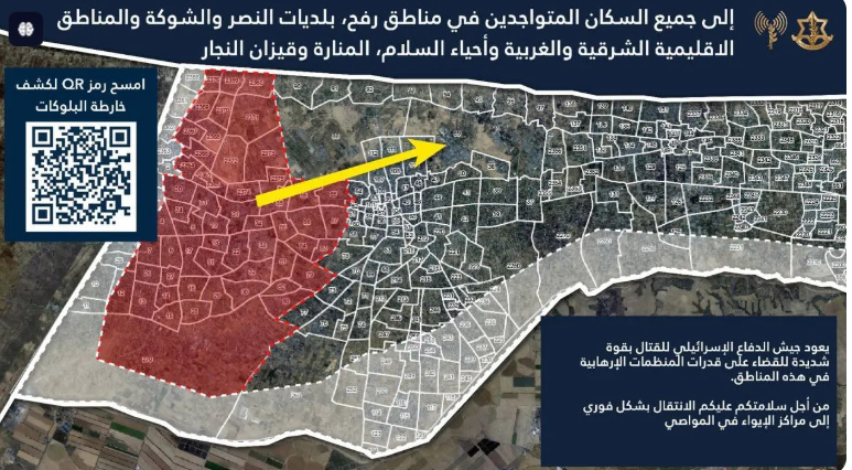 وشمل التحذير الإخلاء الكامل لمحافظة رفح وأجزاء من خانيونس.