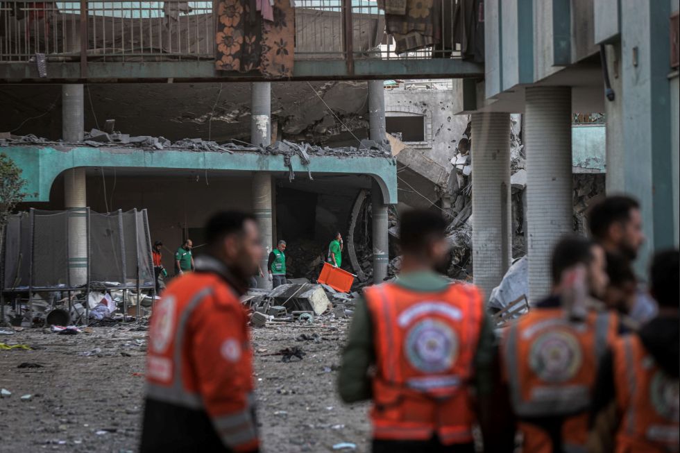 مشاهد مروعة.. اللحظات الأولى لمجزرة مدرسة "دار الأرقم" بعد قصف الاحتلال المكان، وارتقاء 25 فلسطينياً وإصابة العشرات. pic.twitter.com/45Y9RbfUGK
