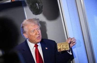 وقال ترمب للصحفيين: "مقابل 5 ملايين دولار، قد تكون هذه ملكك، كانت تلك أول بطاقة، هل تعرف ما هي تلك؟.. إنها البطاقة الذهبية - بطاقة ترمب ".