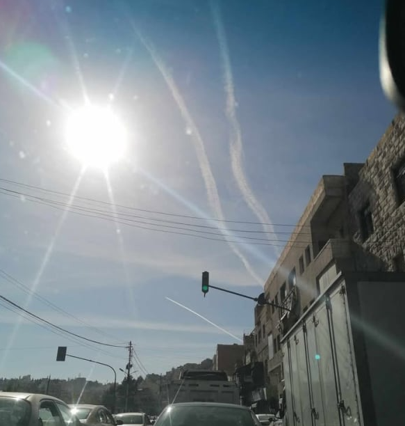 شهدت سماء الأردن وبالأخص سماء العاصمة عمان، مساء السبت، انتشارا لافتا لظاهرة يطق عليها "غيوم الطائرات" او "مسارات التكاثف".