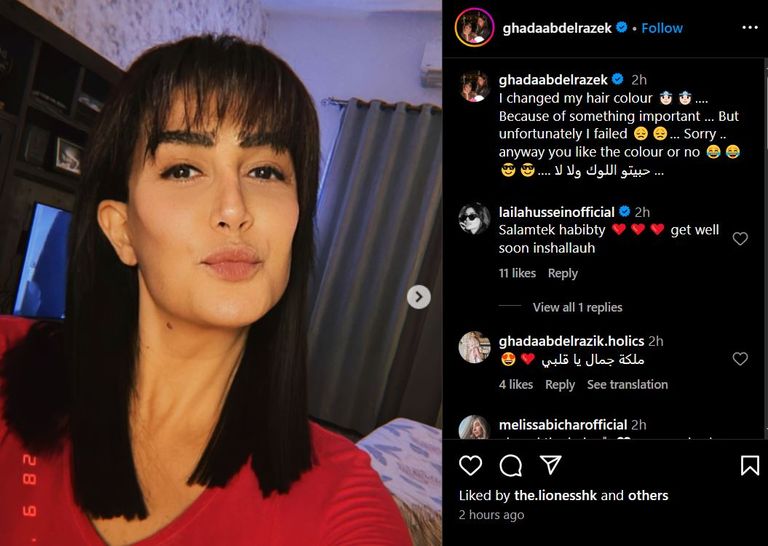 نشرت غادة عبدالرازق عبر حسابها الرسمي على "إنستغرام" مجموعة من الصور التي ظهرت خلالها بقصة شعر جديدة ولون مختلف تمامًا عن المعتاد، لتفاجئ جمهورها بهذا التغيير الجريء.