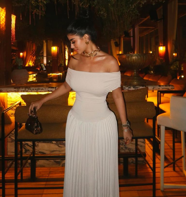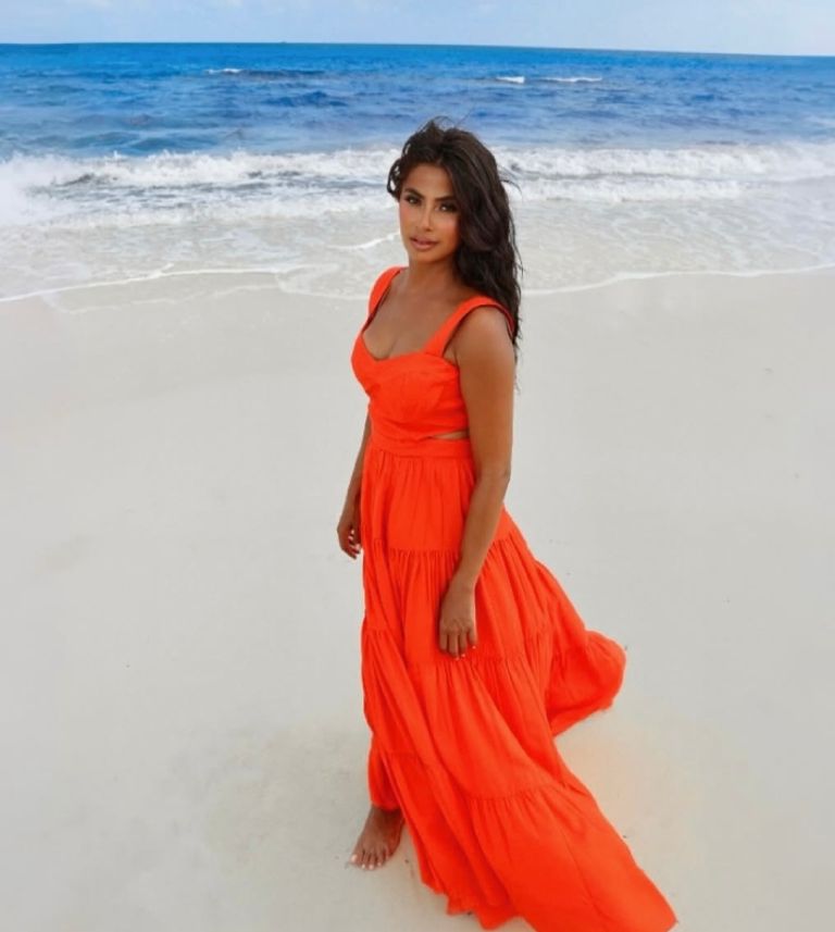 أما الفنانة روبي، فقد شاركت جمهورها صورًا من أحدث ظهور لها على الشاطئ، حيث ارتدت فستانًا طويلًا باللون البرتقالي، أبرز رشاقتها وأناقتها. كما أطلت مؤخرًا بفستان فضي لامع طويل من تصميم العلامة التجارية Retrofete، بلغ سعره نحو 37,897 جنيهًا مصريًا، وهو ما يعكس أناقتها في اختيار الأزياء الراقية.