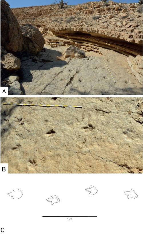 ويُذكر أن آثار الديناصورات المكتشفة في المنطقة تُعد من الاكتشافات النادرة في الشرق الأوسط، حيث تتوزع ضمن طبقات صخرية بحرية قديمة، وتضم مسارات لثلاث مجموعات رئيسية من الديناصورات تشمل الثيروبودات، والصوروبودات، والأورنيثوبودات، ما يضفي على الموقع أهمية علمية وسياحية استثنائية