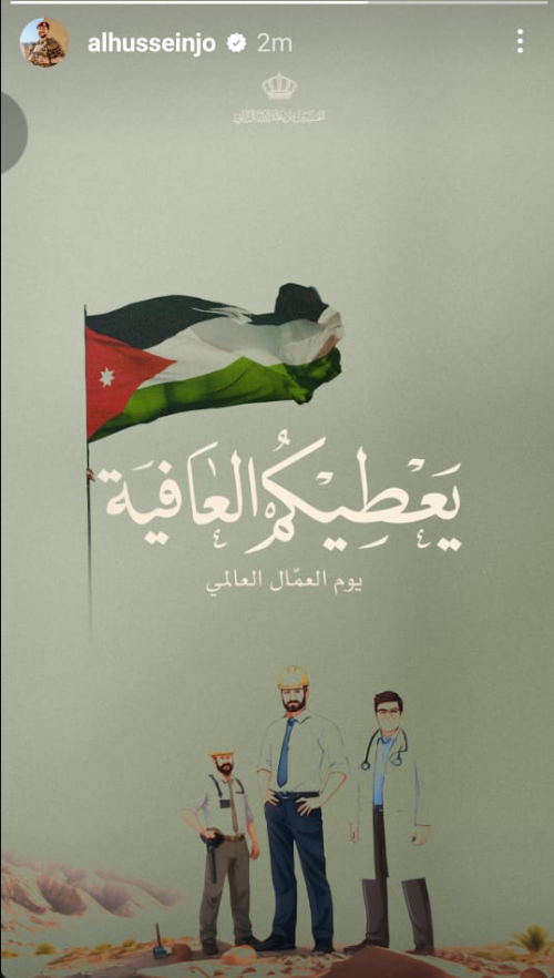 هنأ سمو ولي العهد الأمير الحسين بن عبدالله الثاني، الخميس، بمناسبة عيد العمال، الذي يصادف الأول من أيار من كل عام.