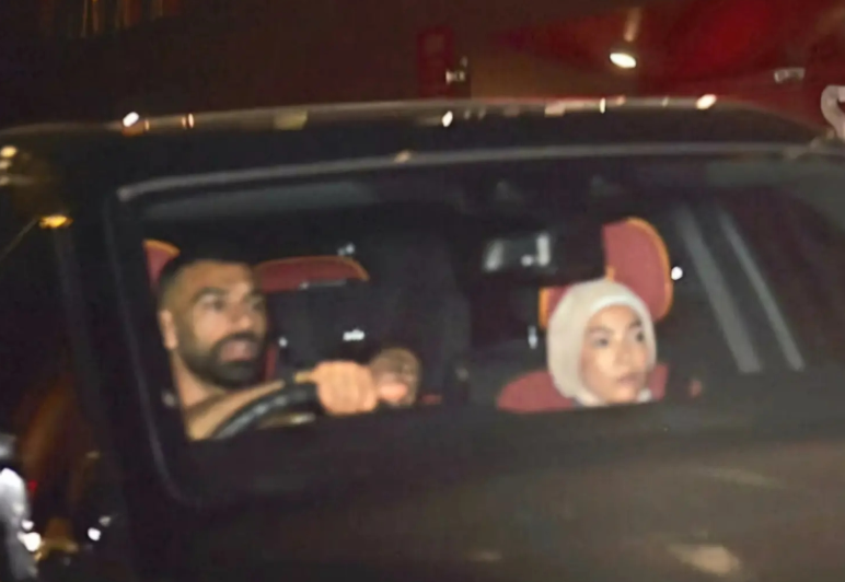 والتقط المتابعون صورة لصلاح وهو يقود سيارته بعد مغادرة المطعم، بينما كانت زوجته ماجي صادق بجواره في السيارة.