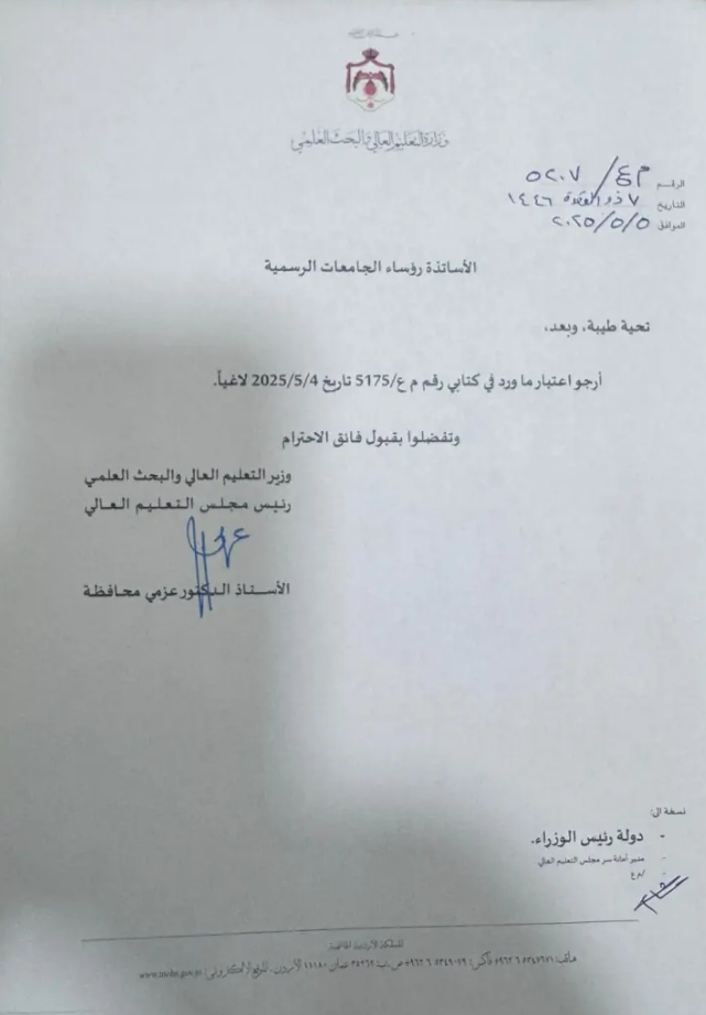 ويأتي هذا التوجيه في أعقاب الجدل الواسع الذي أثاره الكتاب السابق المستند إلى قرار مجلس الوزراء، والذي تضمّن سلسلة إجراءات إدارية أثارت استياء واسع بين أعضاء الهيئتين التدريسية والإدارية، كان أبرزها إلغاء التأمين الصحي الخاص.