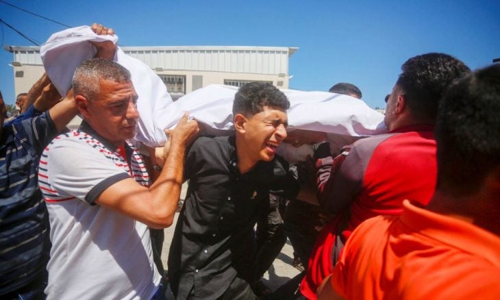 وسبق ذلك، قتله فلسطينيين اثنين وإصابة آخرين بقصف استهدف تجمعا لمواطنين بمدينة دير البلح وسط القطاع.