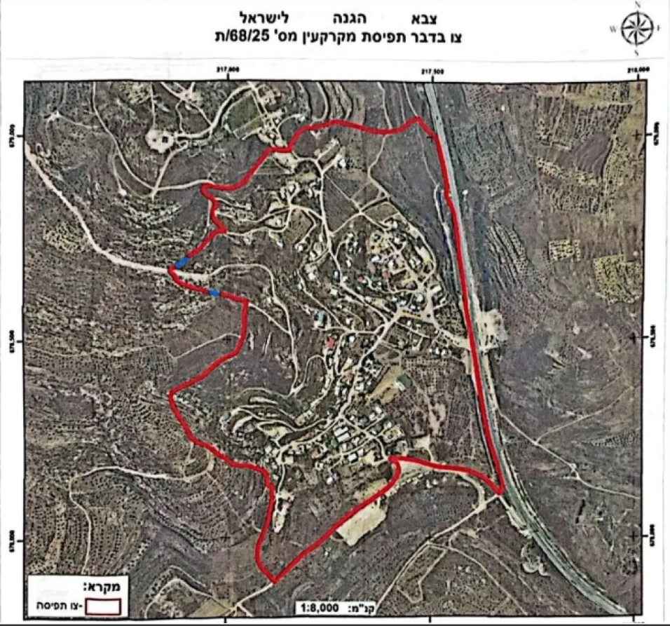 واستهدف الأمر الثاني الذي حمل الرقم ت/38/25 ما مجموعه 4.821 دونماً من أراضي حوارة في محافظة نابلس، وتحديداً منطقتي النجمة القبلية والطول، وذلك بهدف إقامة سياج أمني محاذٍ للشارع، وتترتب على فرض الأمر العسكري محاصرة منزل فلسطيني بالسياج العازل، ووضع بوابة عند مدخل المنزل، ما يُعرّض العائلة لخطر الحصار.