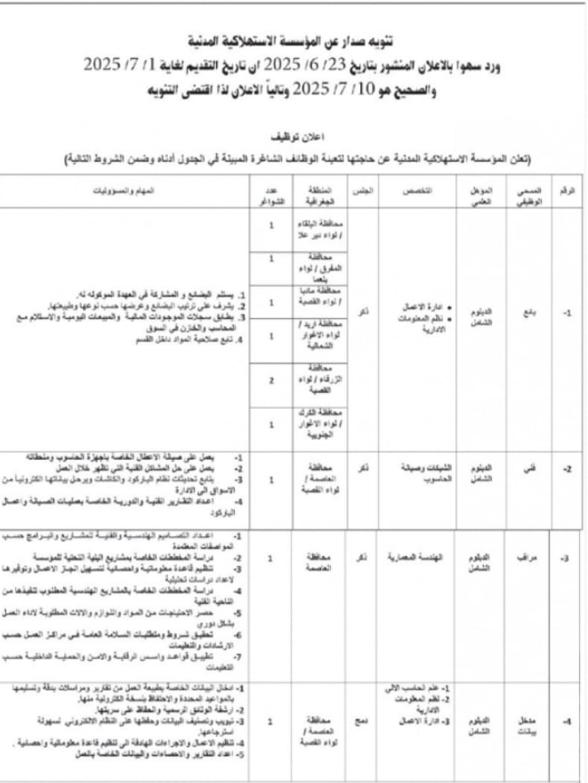 أعلنت عدد من المؤسسات الحكومية، اليوم الثلاثاء، عن شواغر وظيفية، فيما دعت مؤسسات أخرى عددا من المرشحين لإجراء المقابلات الشخصية.