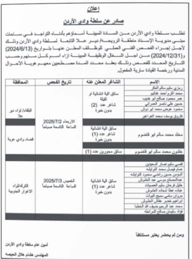 أعلنت عدد من المؤسسات الحكومية، اليوم الأربعاء، عن شواغر وظيفية، فيما دعت مؤسسات أخرى عددا من المرشحين لإجراء المقابلات الشخصية، وتاليًا التفاصيل: