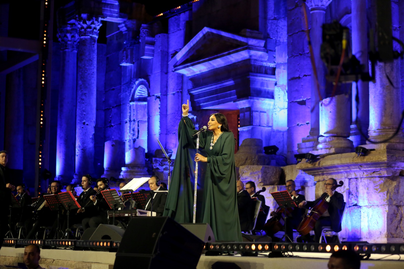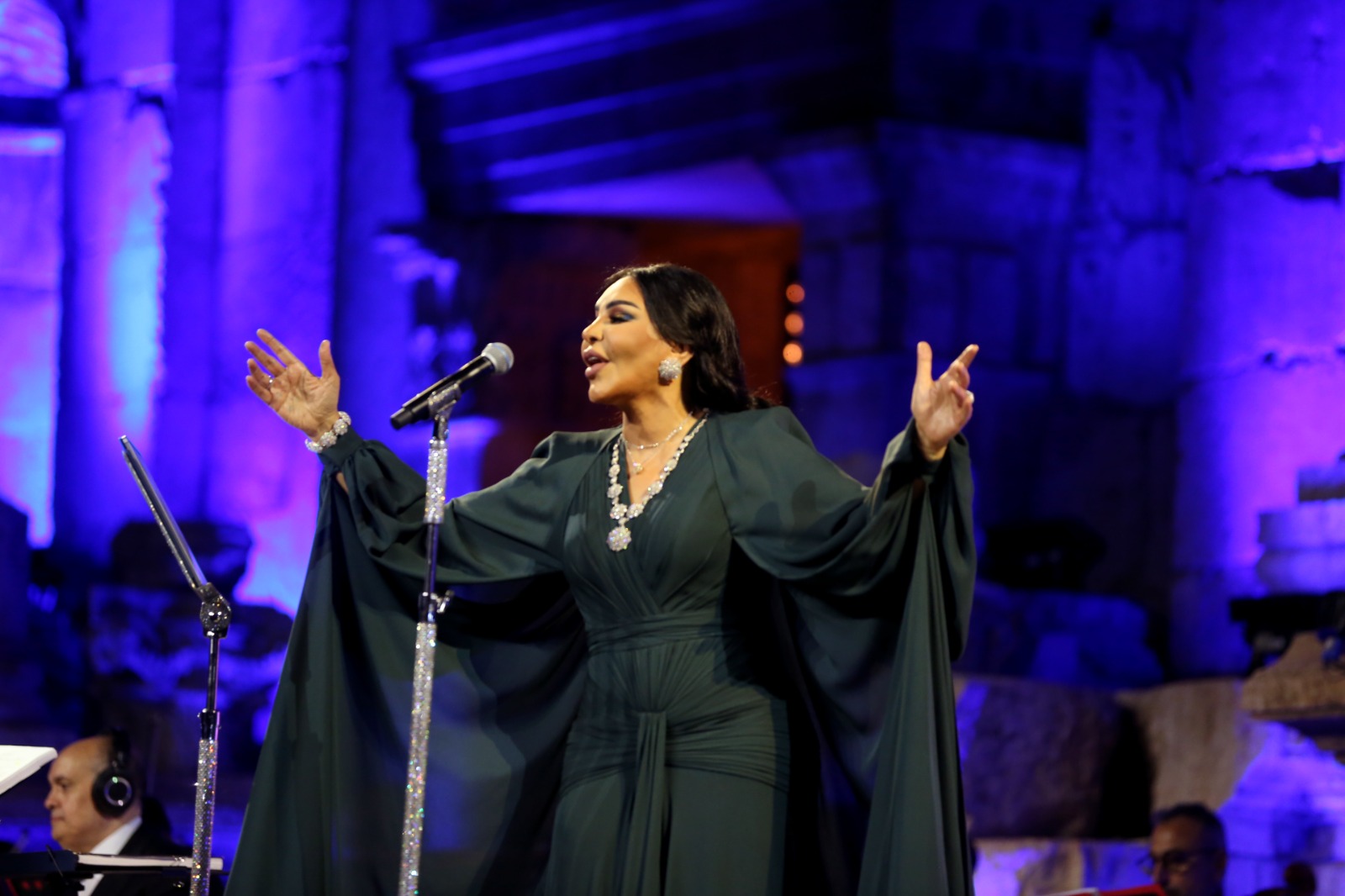 كثر سرب الحنين إلّا عابر بخفّة". لتواصل تقديم روائعها من البوماتها القديمة والجديدة وسط هتاف الجماهير، ومنها أغنية "ع العين موليتين".