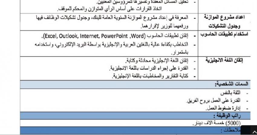 وتاليا تفاصيل ومتطلبات الشاغر: