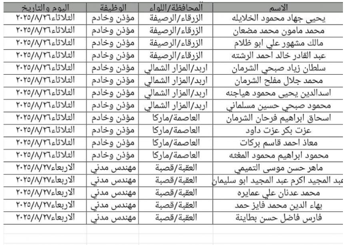 وأدرجت الوزارة في إعلانها مواعيد المقابلات إزاء كل اسم وذلك بين من الساعة التاسعة صباحاً وحتى الساعة الحادية عشر مصطحبين معهم بطاقة الأحوال المدنية سارية المفعول وكل من يتخلف عن المقابلة يعتبر مستنكفاً.