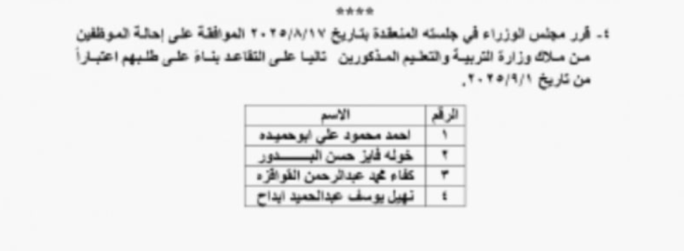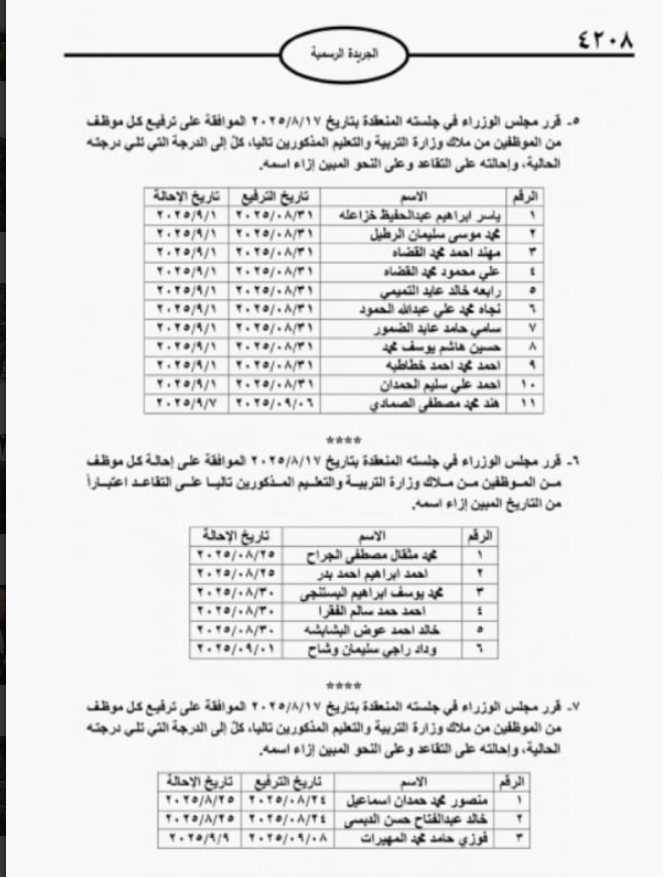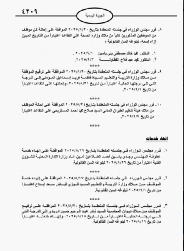 صدرت في عدد الجريدة الرسمية اليوم السبت، قرارات مجلس الوزراء بإحالات موظفين إلى التقاعد وإنهاء خدمات آخرين.