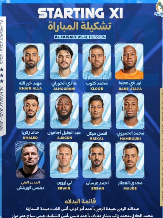 وجاءت تشكيلة الفيصلي على النحو التالي: