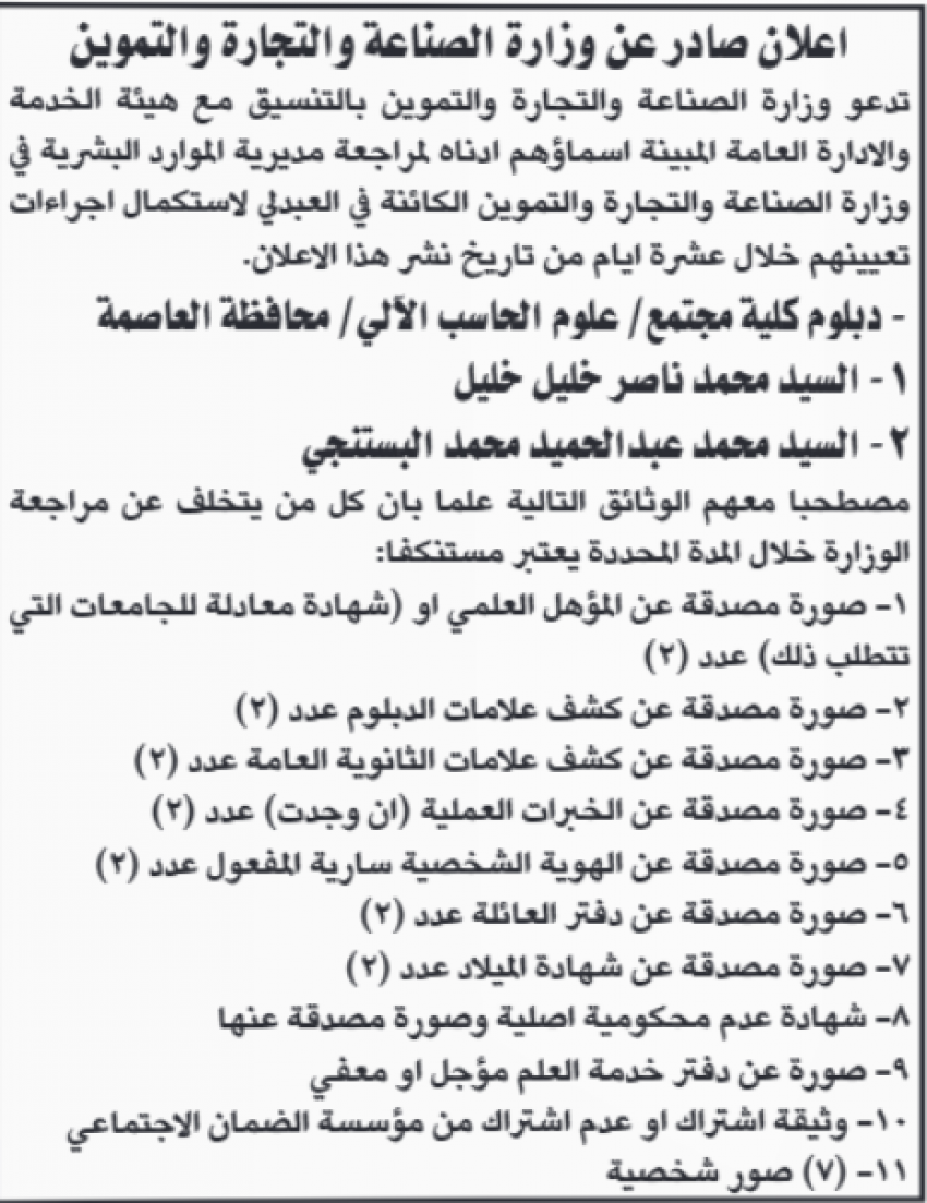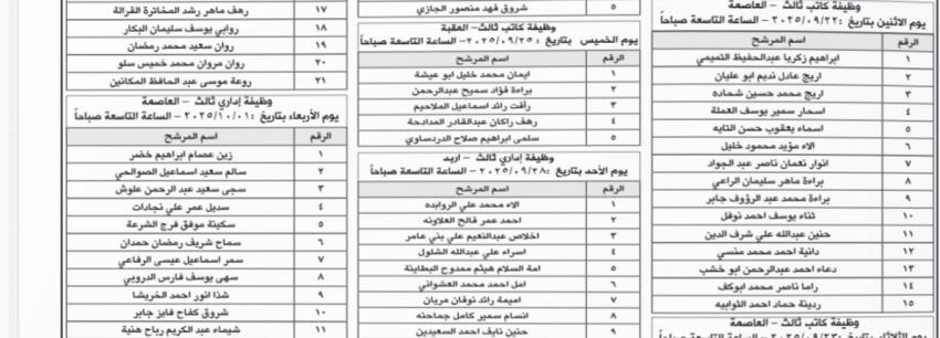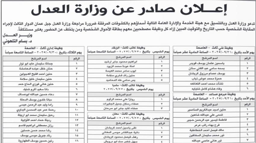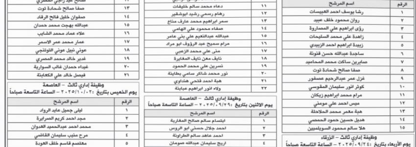 فيما ودعت مؤسسات أخرى عددا من المرشحين لإجراء المقابلات الشخصية والامتحان التنافسي لغايات التعيين.