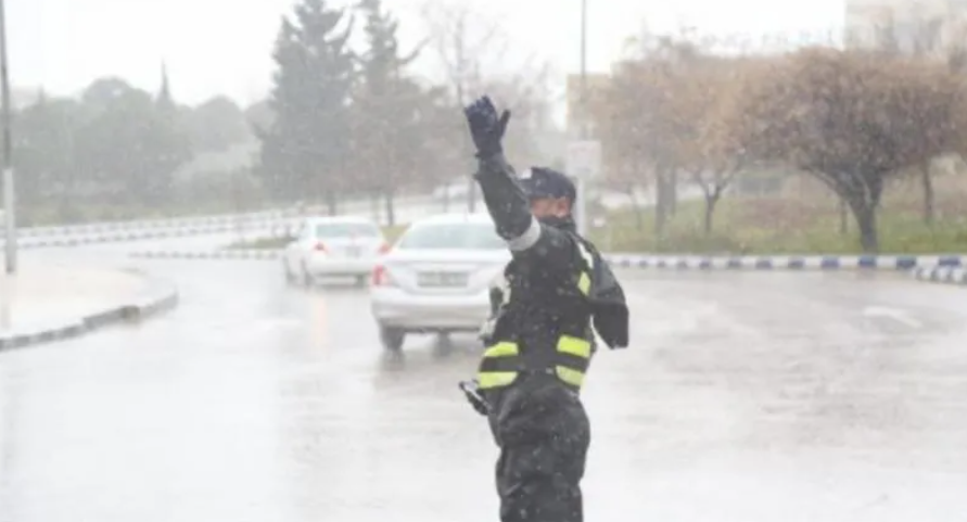 تساقط الثلوج على مرتفعات الشوبك وتحذيرات من مخاطر الطرق والضباب