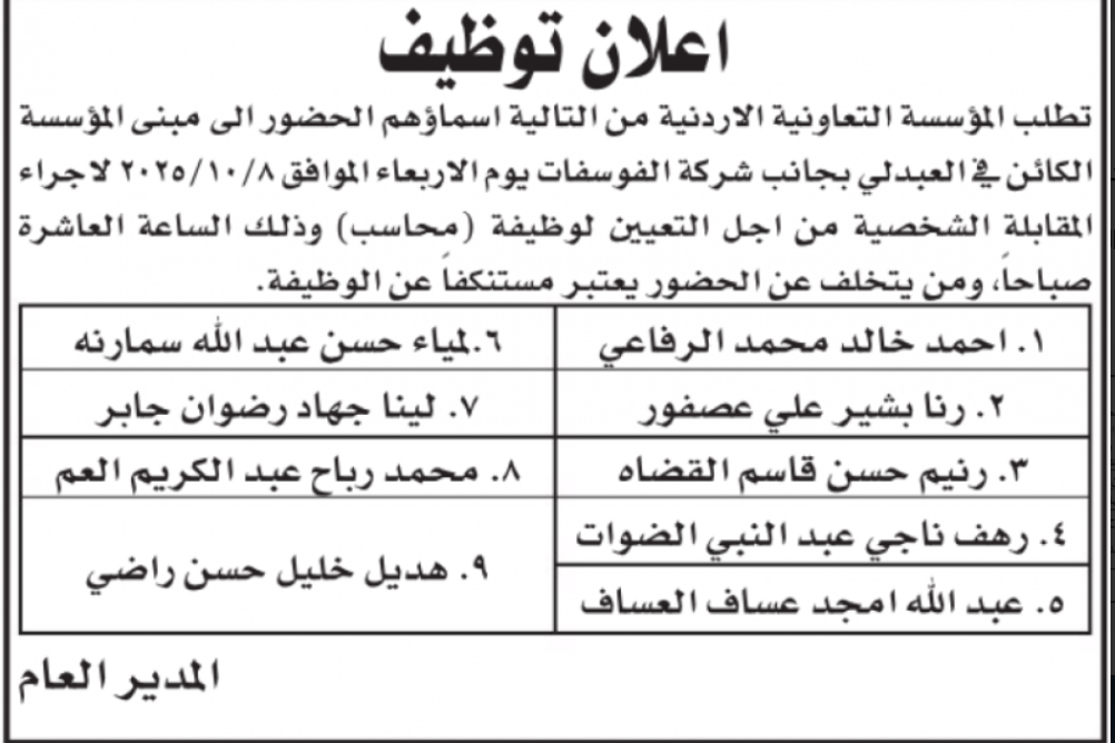 هذا ودعت جهات أخرى المرشحين المستوفين للشروط لاجراء المقابلة الشخصية.