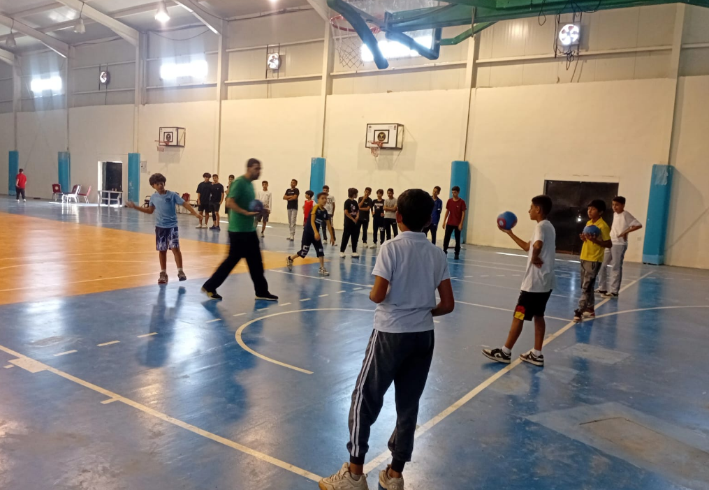قدّم المدرب معاذ مقابلة شرحاً حول أسس رياضة كرة اليد، مبيناً أهميتها في تطوير شخصية اليافعين وتعزيز قدراتهم على العمل الجماعي والتفاعل والمشاركة.