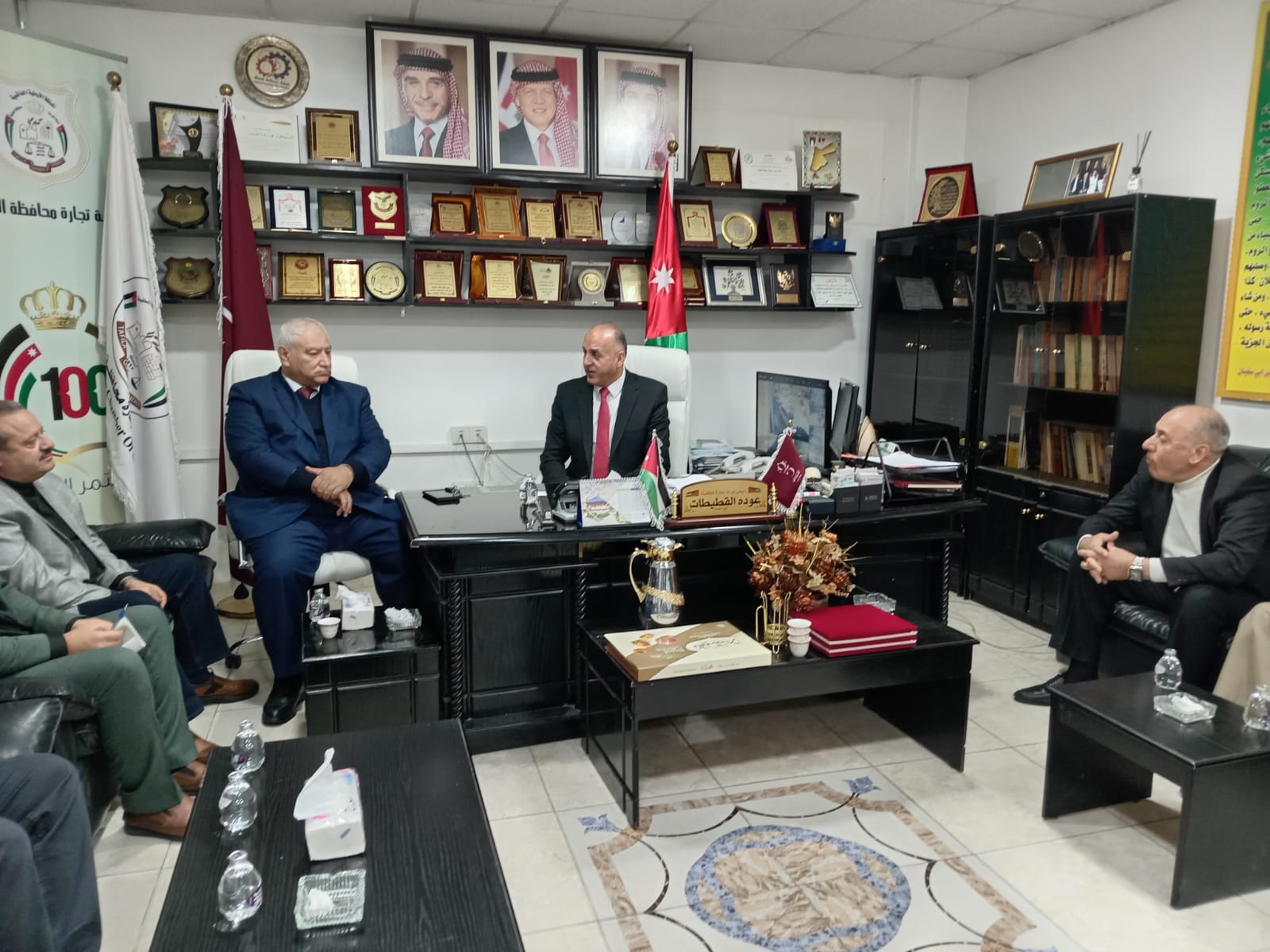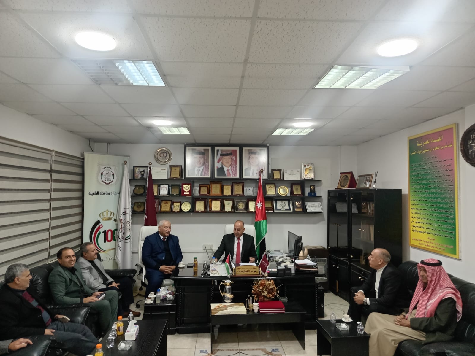 خالد قطاطشه- في إطار حرصه على التواصل المباشر مع المؤسسات الرسمية والخاصة ومختلف القطاعات ومتابعة واقع الخدمات الاقتصادية، قام محافظظ الطفبلة الدكتور سلطان الماضي بزيارة إلى غرفة تجارة الطفيلة ، حيث التقى رئيس الغرفة عوده الله القطيطات وعدداً من أعضاء مجلس الإدارة.