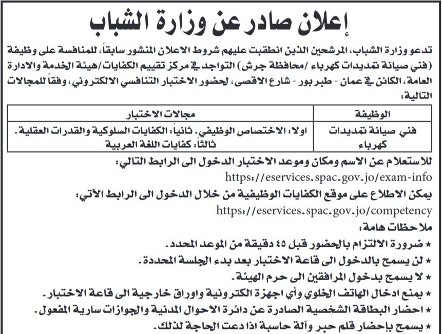 دعت وزارة الشباب، اليوم الأحد، الأشخاص المذكورة أسماؤهم لاحقاً للتوجه إلى الامتحان التنافسي