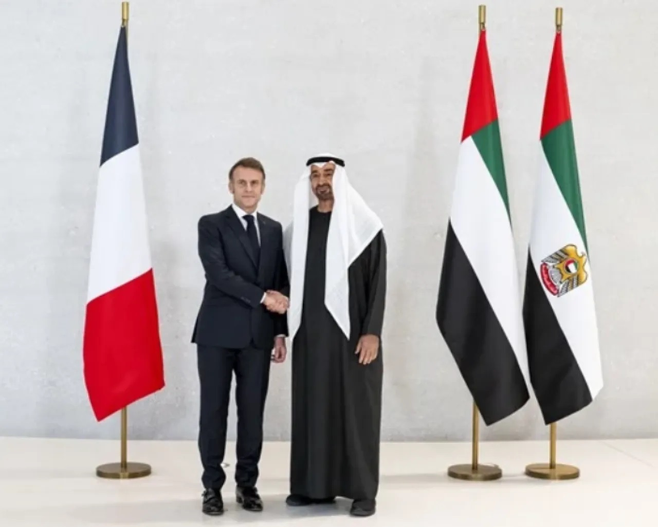 وكان الرئيس الفرنسي قد وصل البلاد في وقت سابق اليوم، حيث كان في مقدمة مستقبليه في مطار الرئاسة في أبوظبي، الشيخ خالد بن محمد بن زايد آل نهيان، ولي عهد أبوظبي، وعدد من كبار المسؤولين.