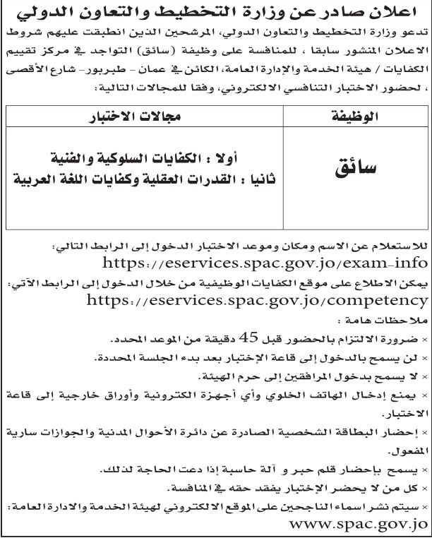 دعت دوائر حكومية، اليوم الثلاثاء المرشحين الذين انطبقت عليهم شروط الاعلان المنشور سابقا للامتحان التنافسي.