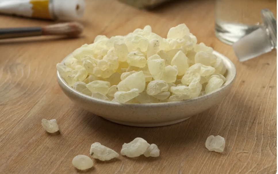 وتحتوي هذه العلكة الطبيعية على مركبات التربينات وأحماض التربيتيربينيك ذات الخصائص المضادة للميكروبات والالتهابات. كما يزعم منتجوها أن المضغ المنتظم قد يقوي عضلات الوجه والفك، رغم أن الأدلة على التأثيرات المرئية المباشرة تبقى محدودة.