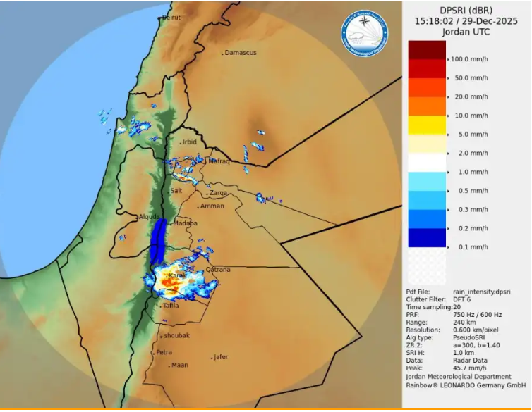 الأرصاد الجوية: الطفيلة على موعد مع أمطار غزيرة بعد قليل
