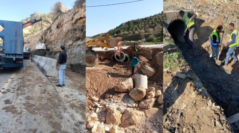 وأضاف إن الفرق المختصة قامت بتوزيع حواجز خرسانية في المواقع التي تشهد انجرافات وتنظيف وتهيئة جوانب الطرق وتركيب الحمايات اللازمة، إضافة الى تنفيذ أعمال تهذيب للميول غير الثابتة على جوانب بعض الطرق، لمنع انجرافها وتأمينها هندسيا وتعزيز المواقع الخطرة بنحو 3500 حاجز إسمنتي خلال الأيام الماضية.