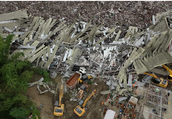 وأفادت السلطات بأن نحو 50 عاملا دُفنوا أحياء تحت القمامة، بينما تم حتى الآن انتشال 6 جثث على الأقل، في حين لا يزال عشرات في عداد المفقودين.