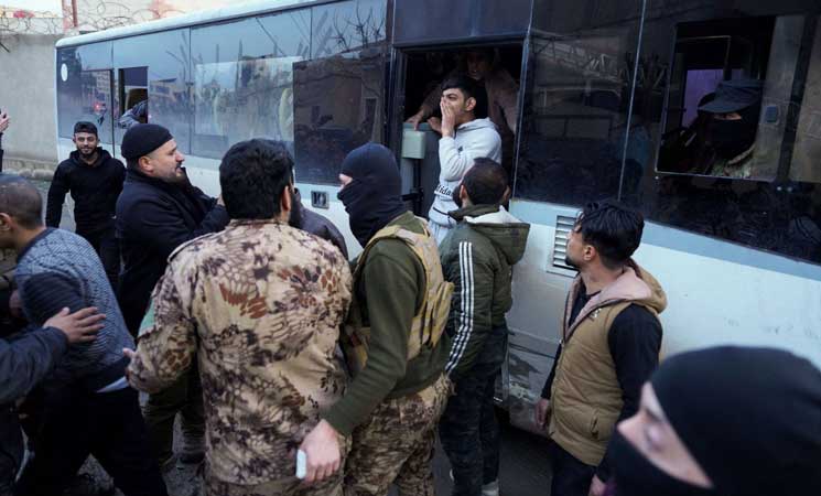 وصول دفعة من سجناء سجن الأقطان إلى القصر العدلي في مدينة الرقة تمهيداً لتسليهم لذويهم