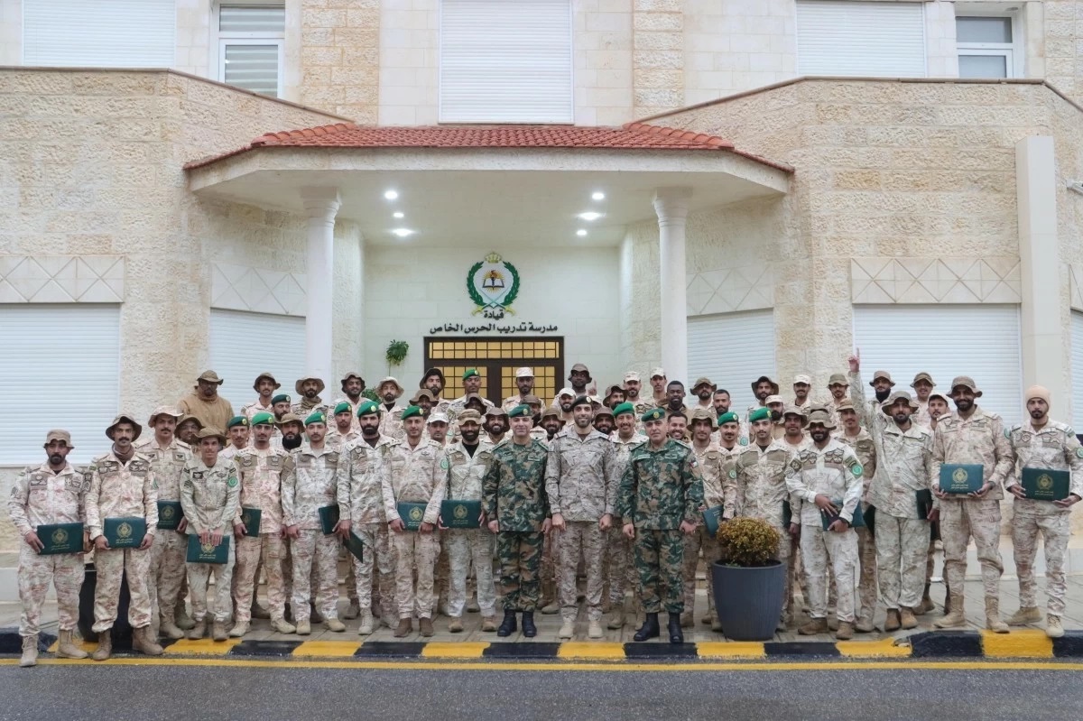 احتفلت مدرسة تدريب الحرس الملكي الخاص، اليوم الخميس، بتخريج مجموعة من الدورات التدريبية، وذلك بحضور قائد الحرس الملكي الخاص، وبمشاركة عدد من الضباط وضباط الصف والأفراد من قيادة الحرس الملكي الخاص، إلى جانب ضباط وضباط صف من الدول الشقيقة: المملكة العربية السعودية، ودولة الكويت، ودولة قطر.