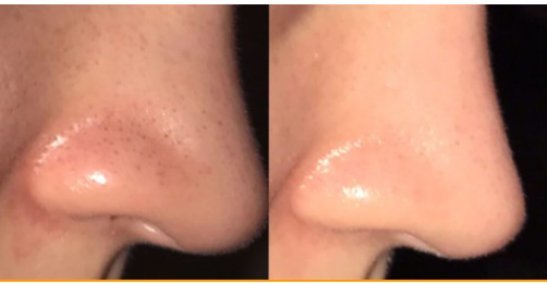 يوضع الخليط على الأنف لمدة 15 دقيقة، ويدلك بحركات دائرية ثم يغسل بالماء الفاتر.