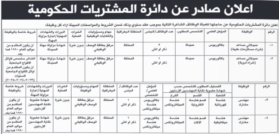 أعلنت دوائر حكومية عن رغبتها في ملء شواغر وظيفية في حين أعلنت دوائر أخرى عن أسماء موظفين فاقدين لوظائفهم.